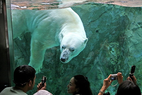 或許也是這樣的想法,讓旭山動物園逐漸改變了傳統動物園的展示方式,除了定點導覽外,他以「行動展示」的方式,展示動物最原始的本能和生命力,讓動物園不再只是一座囚禁動物的大柵欄,而是人與動物重新共生的展示台。所以企鵝在人們面前排排走散步、猩猩就在高空中盪來盪去、北極熊潛入水中嬉戲覓食的衝擊力、海豹透過圓筒狀海路彷彿穿梭在三度空間等……